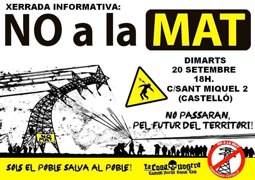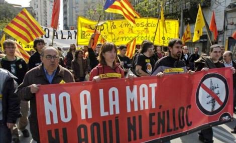 The renewed resistance to the MAT in Feb 2018 comes during a general mobilisation in Girona for the Catalan Republic and the release of Political Prisoners. There are demands for the demoilition of the underused MAT line and for the cancelation of rthe upcomong MIDCAT /STEP gas pipeline, a useless EU funded infrastructure due to plough through Girona. see https://www.facebook.com/NoMesGasBCN/