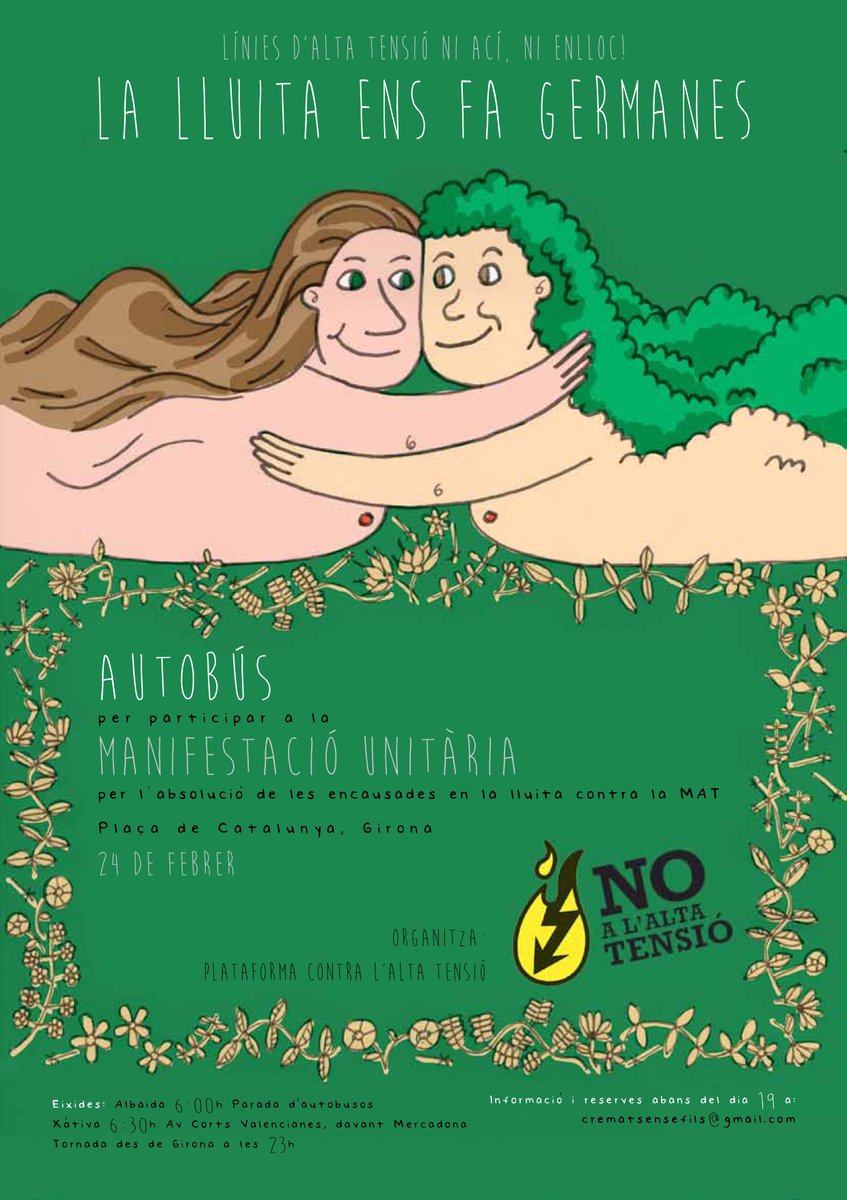Per últim fan una crida a participar en la manifestació unitària que tindrà lloc les 17h de la tarda del 24 de febrer a Girona –quan faltaran tres dies per l’inici del judici–, per “exigir l’absolució de les sis imputades i el desmantellament de la MAT”.