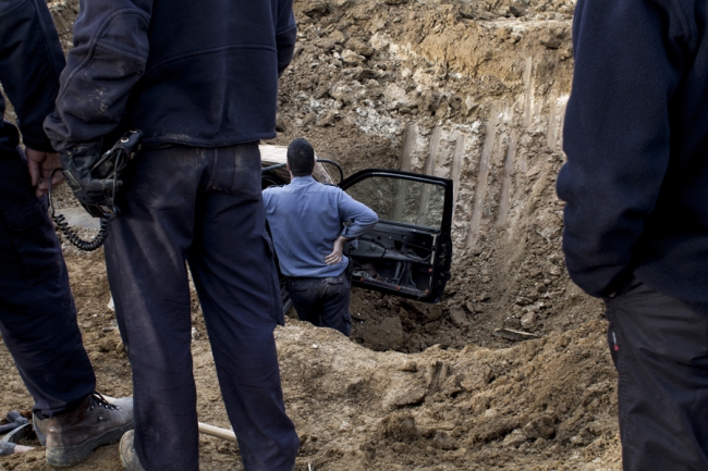 To the surprise of the policemen, when they removed the offending camper van they found a car had been buried deep underground , where one of the neighbors resisted with his arm buried in a cement structure. They couldn’t get him out.