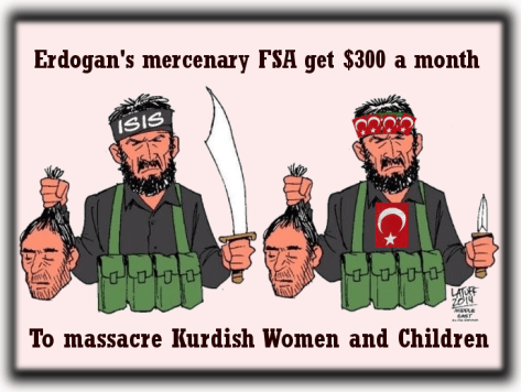 Hasan Shindi – known for collaboration with the MIT (Turkey’s secret service) and a terroristic attack in Afrin – is the spokesperson. He stated that Afrin will belong to Turkey’s Antakya Province. However, Turkish district governors, chief constables and gendarme commanders will be in command like in Ezez, Jerablus and Mare. FSA men will be affiliated to a police force of 450 persons [4].