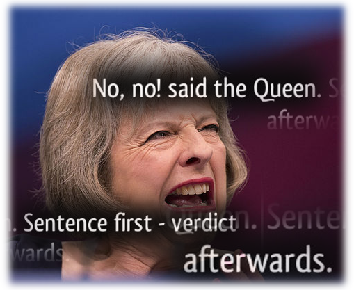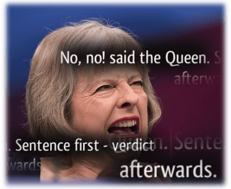 Whether or not May appreciated it, such a statement amounted to her declaring that Russia had committed an act of war against the United Kingdom, contrary to international law. Her statements, together with those of her foreign minister Boris Johnson, carried hyperbole to extreme lengths. It immediately brings to mind the Mad Queen from Alice in Wonderland who demanded the sentence before the verdict.