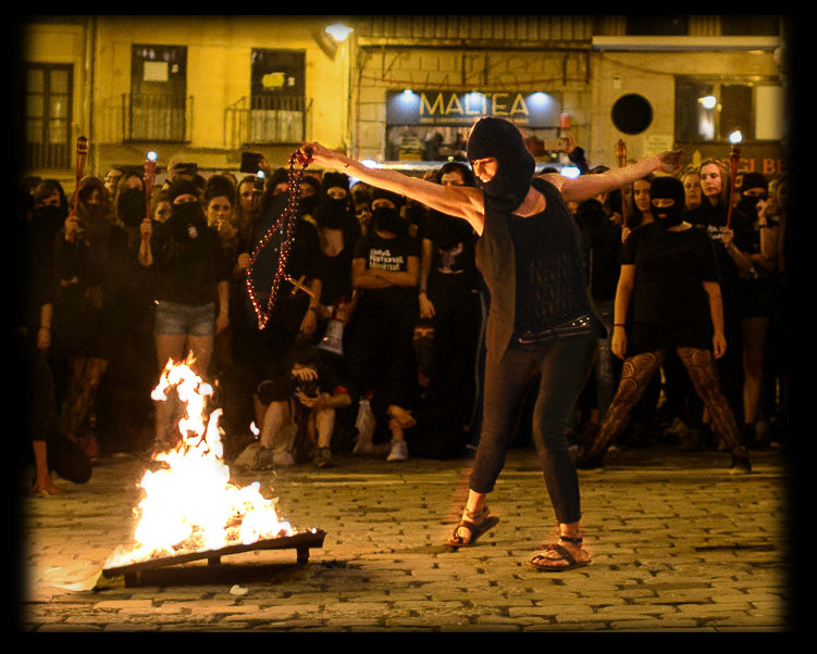 A group of hooded feminists join the march at Carlos Carlos III. Against the heteropatriarchy and in favor of the gaztetxes pic.twitter.com/kWfWRMZF2Y – Aritz Intxusta (@AritzIntxusta) August 25, 2018