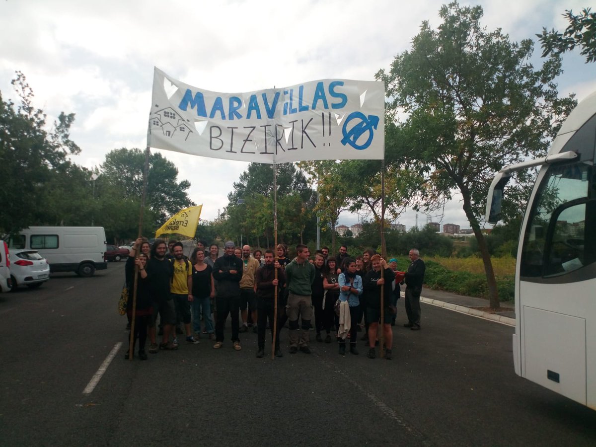 Varios colectivos y organismos tanto sociales como políticos se han adherido a la movilización en la que se ha insistido en lemas como «Okupazioa delitua bada, gora delinkuentzia» (si la ocupación es delito, viva la delincuencia) o «Maravillas aurrera» (adelante Maravillas).