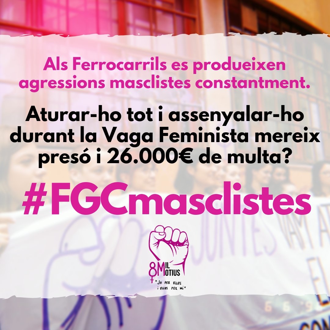 La campaña #8MiMotius se dirige además específicamente a FGC. “La acción no se hizo sin motivo en FGC, sino que queríamos señalar que el transporte público es uno de los lugares donde se producen agresiones a diario”, cuenta.