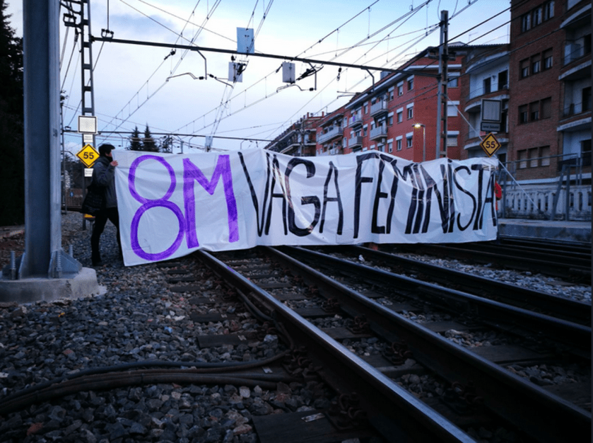 By Patricia Reguero El Salto Original in Castillian below The railway company of the Generalitat de Catalunya has appeared in the Summons of seven activists for blocking the tracks during the hugely successful feminist General Strike on March 8, 2018.