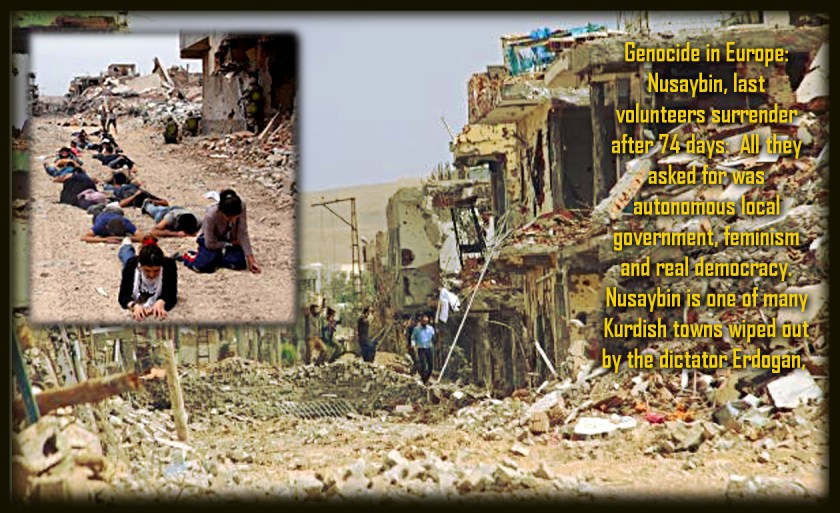 While Ocalan and others negotiated an exciting ‘Kurdish Spring’ began in Turkey, resembling an anarcha-feminist social revolution. But when Kurdish led parties won many seats in the 2015 elections the budding dictator Erdogan attacked the Kurds to gain votes and when the PKK was forced to respond launched an all out military campaign against the ‘Kurdish Spring’.