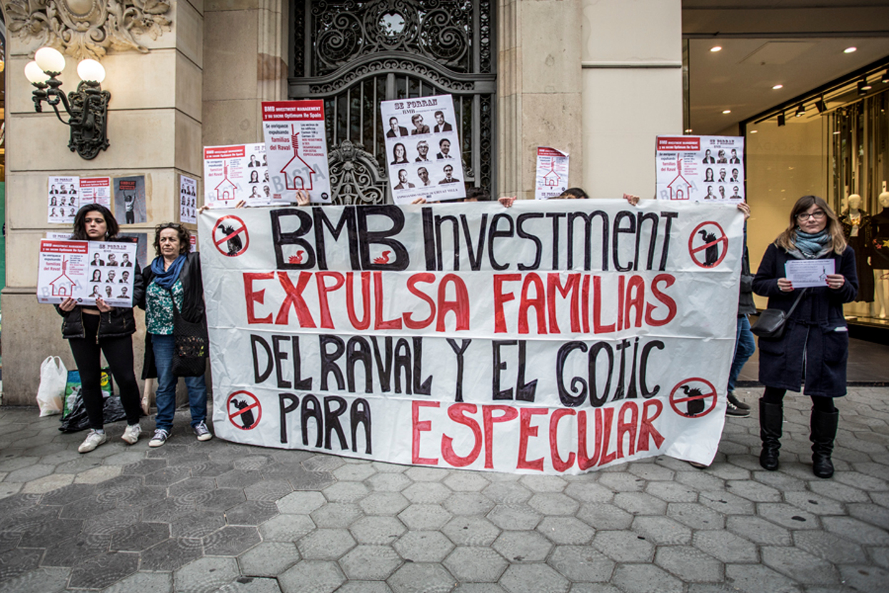 In a separate case a real estate investment company wants to expel tenants from four blocks in Ciutat Vella (Old City). The Raval Housing Syndicate, Raval Rebel and the Union of Tenants occupied the office of the BMB Investment Company in Barcelona to …Una societat d’inversió immobiliària vol expulsar les inquilines de quatre blocs a Ciutat Vella El Sindicat Habitatge Raval, Raval Rebel i el Sindicat de Llogaters ocupen l’oficina de l’empresa BMB Investment a Barcelona per denunciar que, a través de…According to some eyewitnesses, from about eleven o’clock in the morning, three Desokupa employees were planted at the door of the building, doing the tactic they call “access control”, that is, preventing anyone entering and pressuring anyone inside.