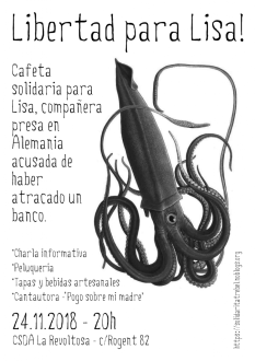 El 13 de abril del 2016 los Mossos d’Esquadra, en colaboración con la policía alemana registraron tres domicilios en Barcelona, los cuales culminaron con la detención de dos compañeras acusadas de una expropiación bancaria a una sucursal de Pax Bank, (propiedad del vaticano) en Aachen, Alemania. El juicio sentenció con la absolución de una de ellas, y la condena a 7 años y medio de cárcel para Lisa, compañera activa en las luchas anarquistas, feministas y antirracistas en barcelonesas.