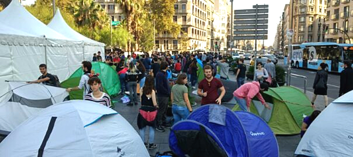 Hundreds of students have been camping since Wednesday in Plaça Universitat in the centre of Barcelona, protesting the Supreme Court’s verdicts and the repression of the independence movement, as well as calling for a “dignified future”, citing issues like the lack of social housing, full equality between men and women and the need for “real measures to stop the climate emergency”.