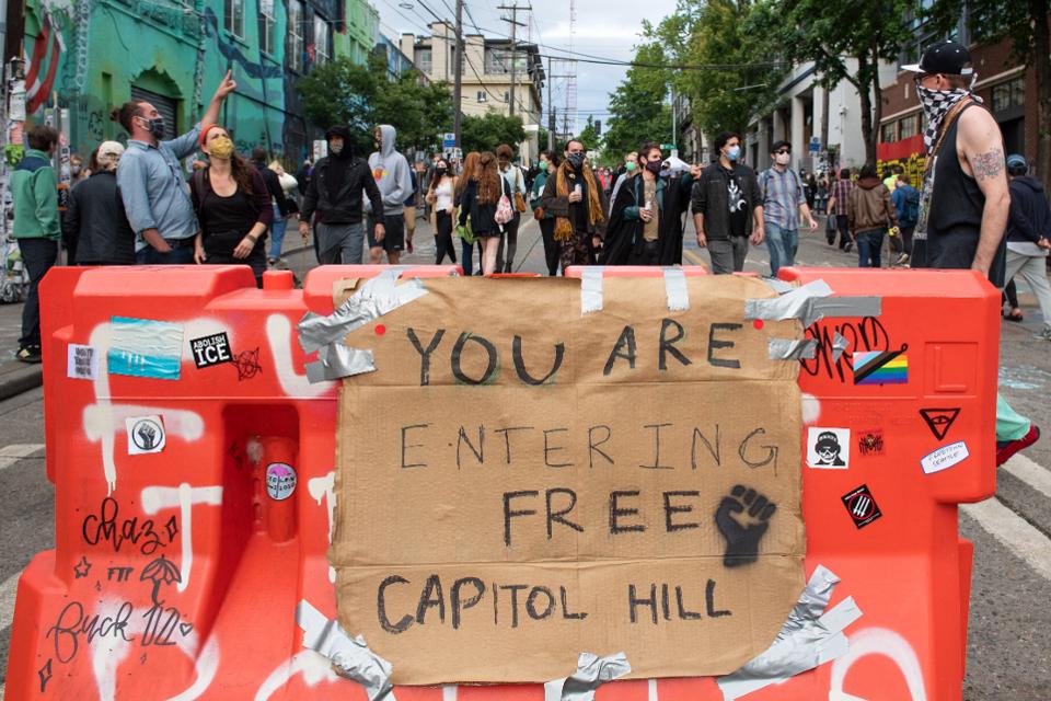 It’s all part of the protesters’ eventual goal to defund the police and find a way to “more compassionately organize our city,” one of the movement’s leaders tells the Times. Per MyNorthwest.com and WPTV, it’s unclear how long police will stay away, or how long protesters will be allowed to stay in the six-block area. One person not thrilled about this new setup: the president.
