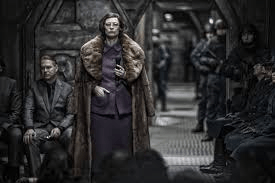 Things get worse as the train goes into a long tunnel while the ‘lictors’ put on night vision goggles. The complete overpowering of the tail-enders in the dark reminds one of the total war of Nazi Germany in the Second World War. Eventually, lit torches are brought up from the back of the train and the rebels overcome the men in black. Despite this victory, the group of insurgents is much weakened and at this point it is decided that Curtis, Namgoong, Yona, skilled fighter Grey, and Tanya and Andrew will go it alone to the top of the train. The revolution is effectively over and a select few are brought forward to meet the elite.