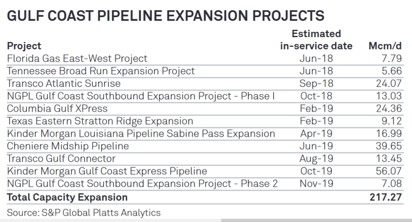 Gulf Coast Fracked Gas pipeline projects Oct 2018