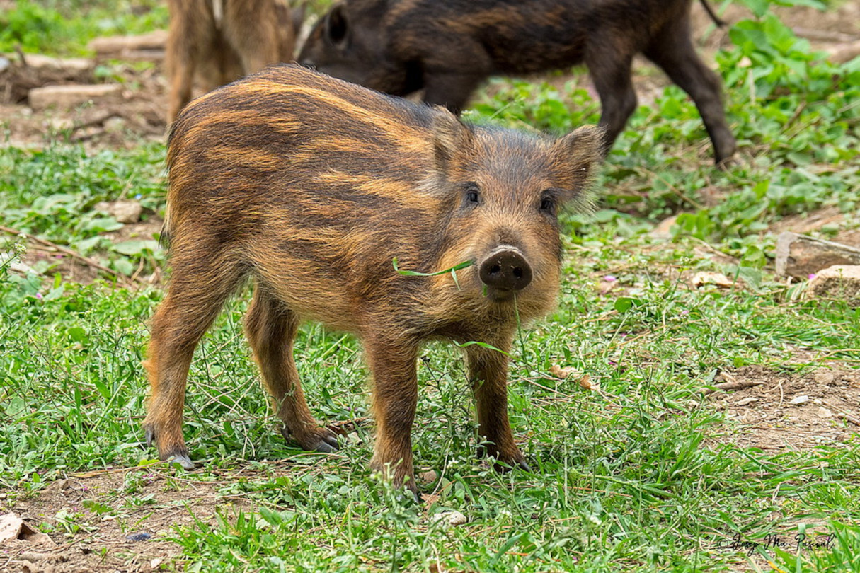 The Sus scrofa, the scientific name for the pig, is an omnivore that’s mainly vegetarian. His favorite dish is acorns and other fruits, roots and bulbs overabundant in our forests.
