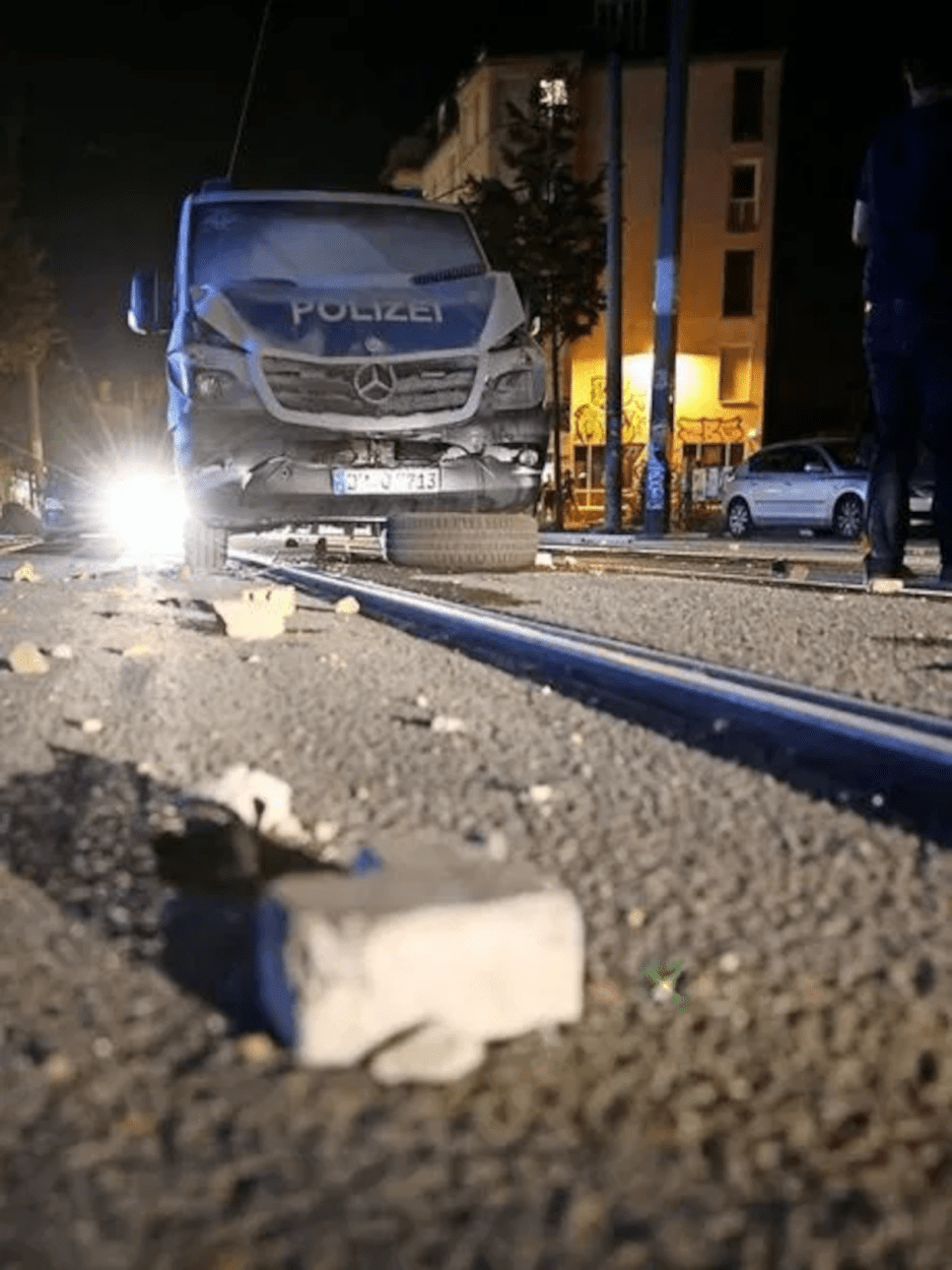 t came to clashes for minutes. In the course of these clashes, the cops raced at high speed from the south towards a crowd of people. They forced people to jump to the side at the last second in order not to die. In the process, they almost rammed a streetcar and finally came to a halt with an emergency stop, with the second vehicle crashing into the first. Without dramatizing, we would like to mention what this was all about: an attempted murder of people who are a thorn in the side of the state. The fact that no one was run over in this rear-end collision is almost a miracle. And with all the joy at the pictures of the destroyed van, with all the jokes that are now being made about illegal street races by cops etc., we do not want to forget that human lives were deliberately put at risk here.