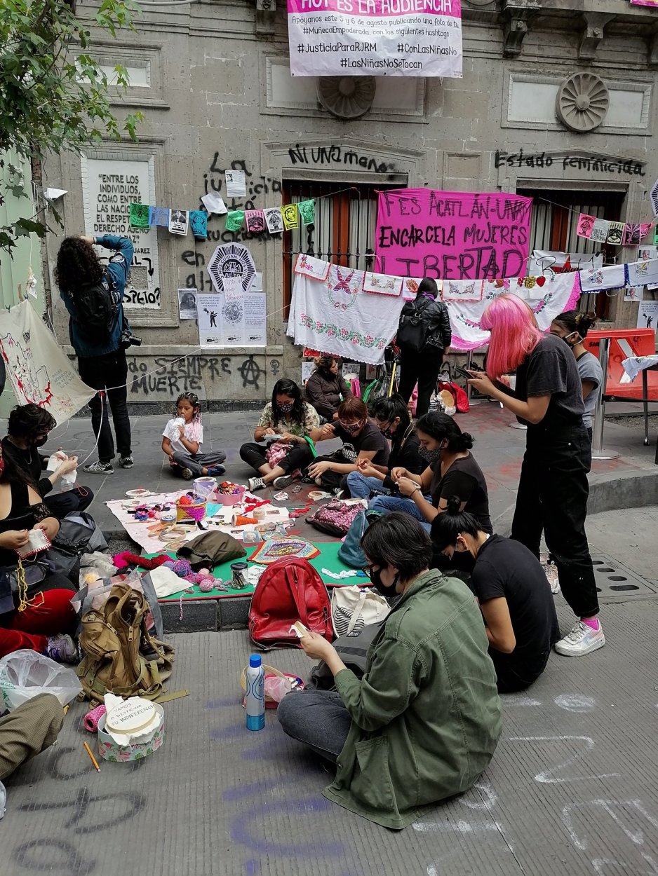 Hours after the protest began at the CNDH facilities, feminist groups arrived at the scene in República de Cuba 60 to support the families and to take over the facilities to demand justice. Through social networks, the groups disseminated the status of the women and asked more feminists to come to the place to accompany the protest and Mrs. Marcela.