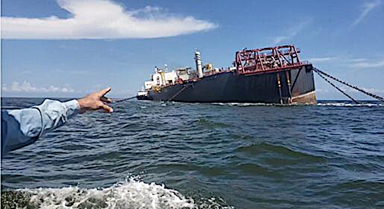 The 60-year-old native of Trinidad and Tobago has been fishing the Gulf of Paria’s waters for most of his life. And for the past three months, he’s been watching the abandoned Floating Storage and Offload unit list further and more drastically into the water by the day.