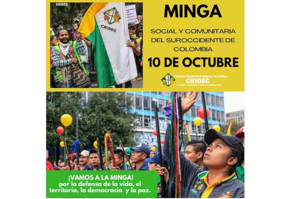 El nombre completo de la movilización es “Minga Social y Comunitaria por la Defensa de la Vida, el Territorio, la Democracia y la Paz”, y se desarrolla cada vez que los pueblos se sienten profundamente agredidos. Hubo muchas mingas desde la Constitución de 1991 que incorporó los derechos colectivos de los pueblos indígenas y afrodescendientes. Porque a pesar del reconocimiento de sus territorios y de un enfoque diferencial en términos de salud, de educación o de justicia propias, los pueblos originarios necesitan garantías, precisan de cierto nivel de equilibrio y armonía territorial para poder desarrollar esos derechos.