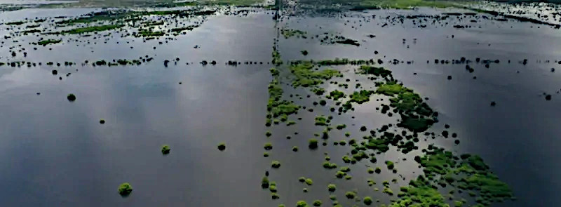 Campo menonita Santa Fe, Hopelchén, Campeche.Permaneció inundado por más de tres meses. En noviembre aún persistían encharcamientos significativos. Foto: Robin A. Canul Suarez.