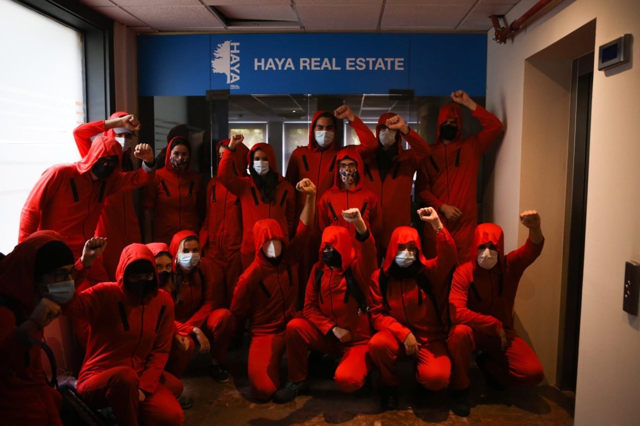 Faced with speculation with the house by this large landlord, this Monday, in Barcelona, the Guerra a Cerberus movement confronted him with an action at the headquarters of Haya Real Estate – a company created by Cerberus to manage and sell real estate.