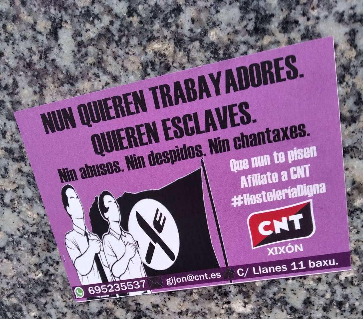 Behind the claim that asks for years in jail for unionism allegedly could be the Gijón hotel trade union, people with a clear conservative orientation, who “have accused the CNT of extorting, of being ETA, and have tried to outlaw the union for a crime of illicit association ”.