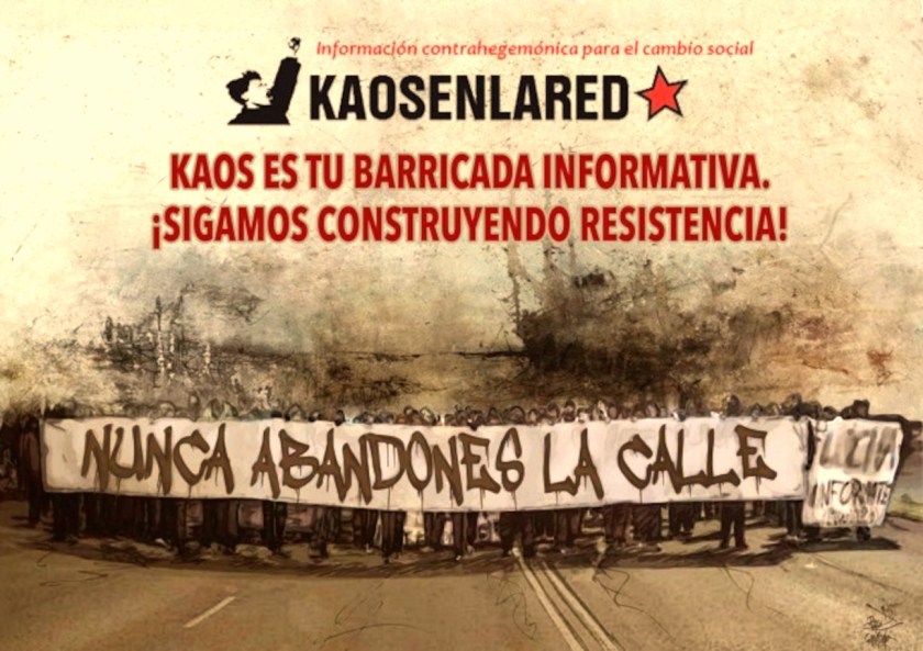 Kaosenlared is the space where social movements, anti-repression platforms, anti-eviction groups, feminists, grassroots unions, anachistic, libertarian, and Marxist sectors converge, in order to spread their complaints, their ideas, their demands.