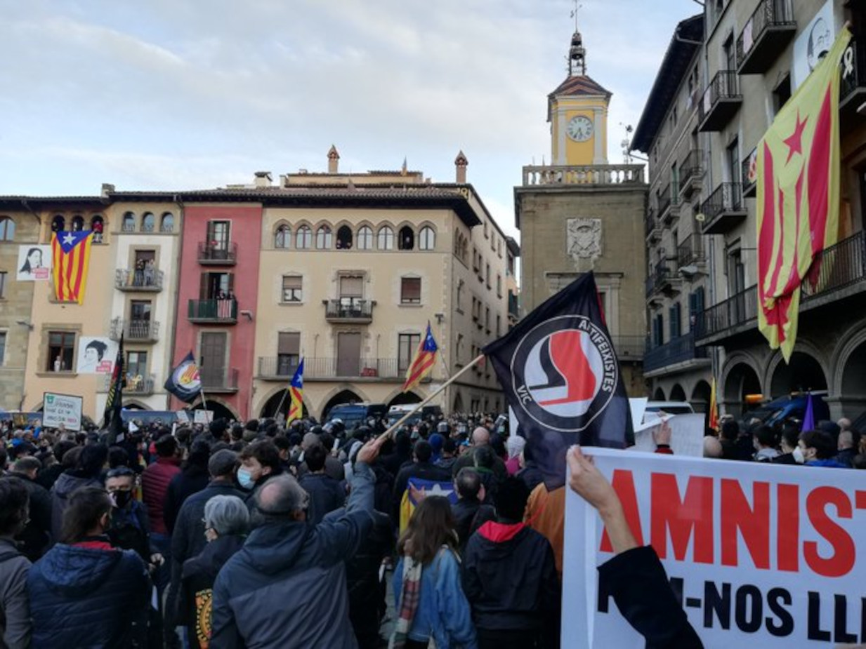 Desde primera hora de la tarde de este sábado, la céntrica Plaça Major de Vic se ha llenado de esteladas y banderas antifascistas para boicotear el acto de campaña de Vox. Los manifestantes han podido impedir el acto, pero se han producido algunos incidentes con los Mossos de Esquadra que, una vez más, han protegido a los ultraderechistas contra el rechazo popular.