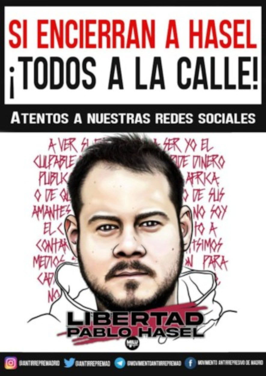 Public pressure of course is essential. In these days dozens of mobilizations, ( decenas de movilizaciones,) hundreds of artists and thousands of messages on networks have denounced that the Spanish State has come to head the list of countries that have retaliated the most artists. Although it is not a reason for joy that the trigger had to be new bad news: the conviction and imprisonment of rapper Pablo Hasel for what he says in a song and some tweets.