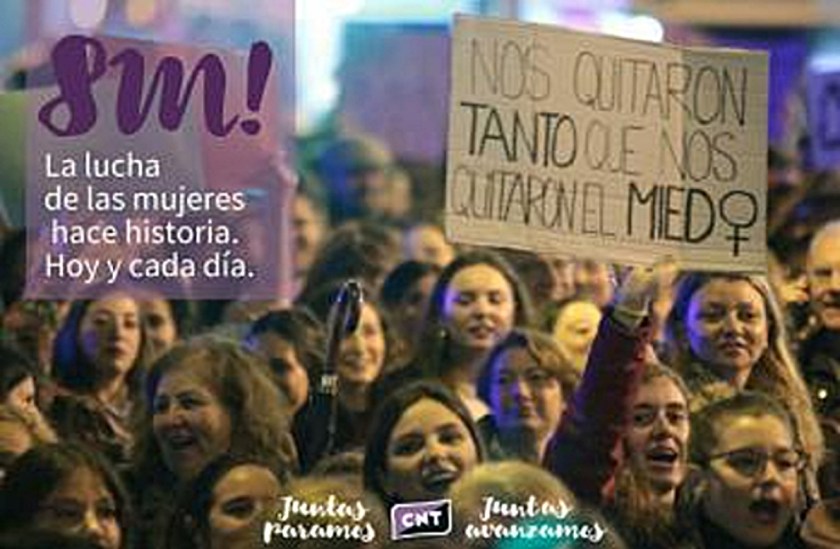 El próximo 8 de Marzo de 2021 hace justo un año de la última gran manifestación que vivió nuestro país, justo un año en que las mujeres volvimos a ocupar las calles como espacio público. Justo un año en que mostramos a toda la sociedad, a todo el mundo, que la lucha feminista, anarcofeminista, es imparable porque los valores que irradia de igualdad, solidaridad, apoyo mutuo, justicia, respeto, antiviolencia, dignidad y libertad son universales.
