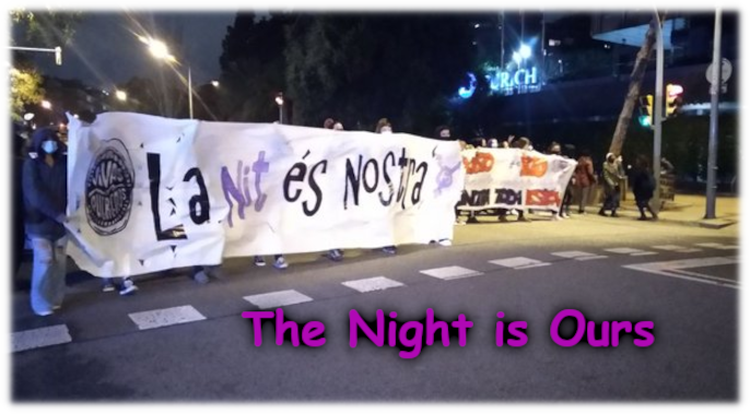 tweet translation..It was very beautiful today in the night march through Barcelona to see how from the windows old women or with babies in their arms applauded us, greeted us and put their hands to their chests when they did not see us pass. #LaNitÉsNostra#ElsCarrersSeranSempreNostres#8M2021