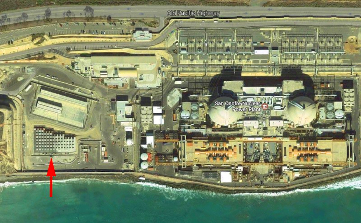 Seventy-three 20-foot tall canisters of highly toxic nuclear spent fuel rods are nestled underground within 108 feet of the Pacific Ocean and not far from Interstate 5 from which passersby catch a glimpse of 73 large rectangular lids poking above ground, thus sealing the most toxic substances on Earth ensconced in ½” dry casks. (Footnote: In contrast, German CASTOR V/19 ductile cast iron casks, with permanent integrated monitoring, are nearly two-feet thick)