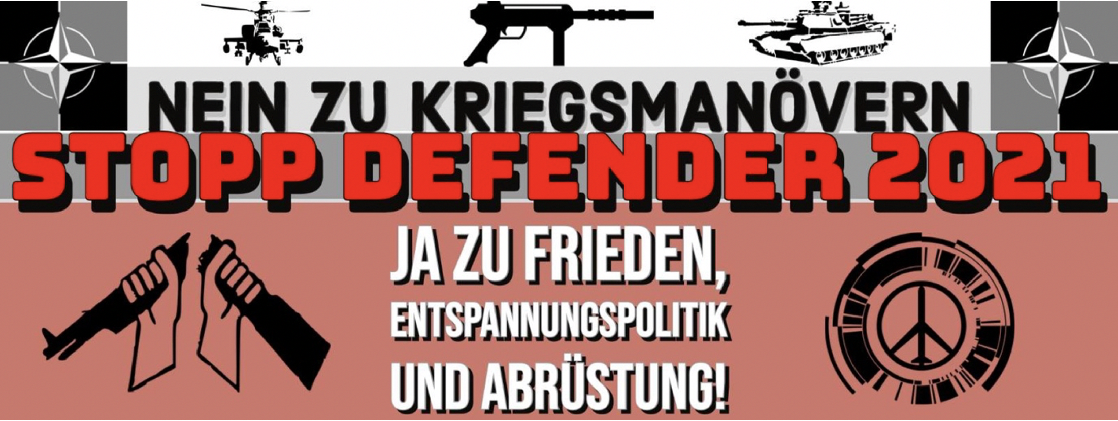 Anti-Defender 21 slogan posted on a Facebook group. “No to war maneuvers,” it says in German. “Stop Defender 21. Yes to peace, détente and disarmament!” (Source: Gegen Defender 21/Archive)