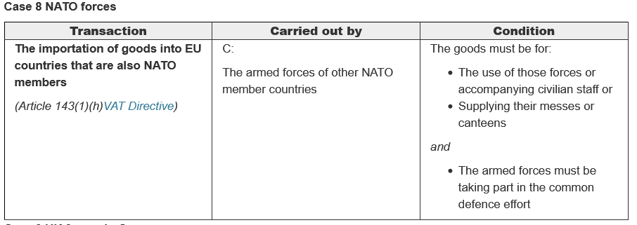 EU tax exemption for invading US forces under NATO
