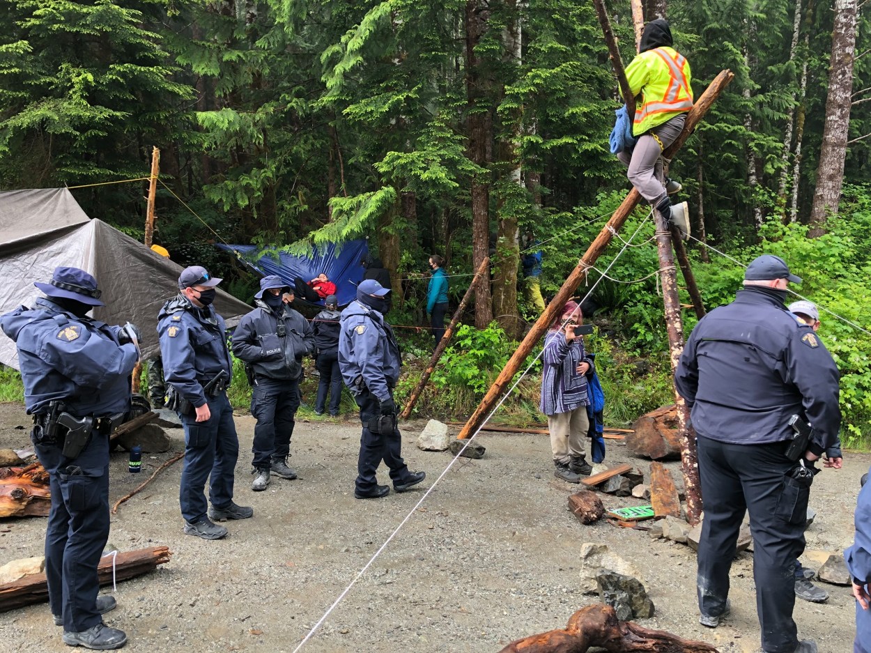 ——--Day 27 of Police EnforcementDay 309 of Direct Action Protecting Vancouver Island’s Ancient Temperate Rainforests on Pacheedaht and Dididaht Territories 222 arrests to date and counting8 total arrests today————–————————————————–Today’s Updates:RCMP ARREST CHILDREN TO UPHOLD A SYSTEM OF ECOCIDAL GREED Today the RCMP sent 47 overt officers, at least 2 special ops officers in camo in the woods and an unknown number of undercover officers to arrest 8 forest defenders. The result of this significant waste of resources includes the arrest of three girls aged 16, 17 and 18.
