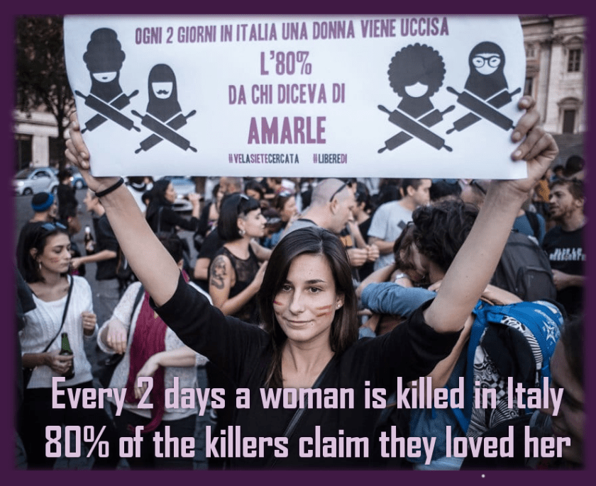 The top of this pyramid of violence and oppression is occupied by femicide. Being killed for the mere fact of being women. Women’s lives, which are extirpated because a man believed they are his property.