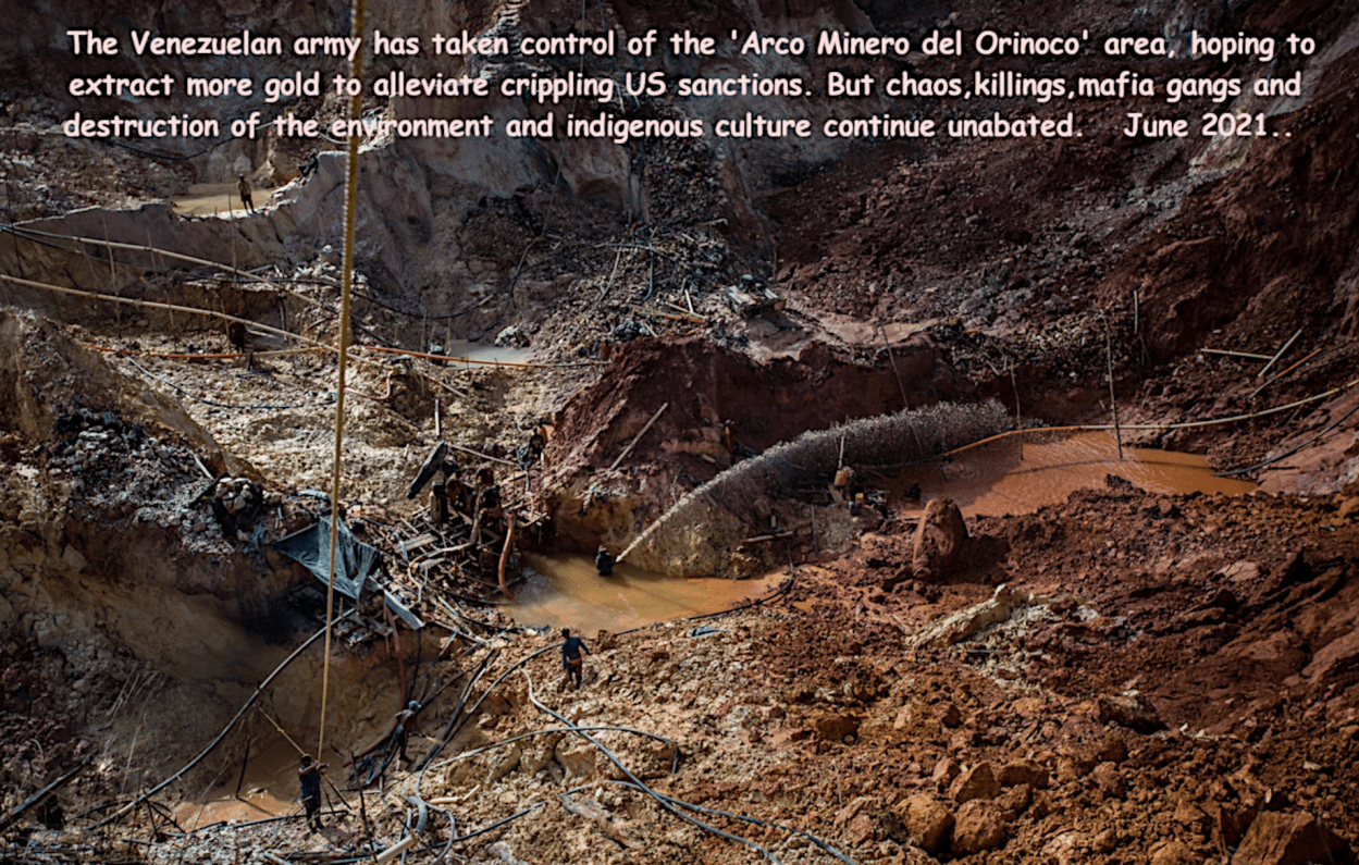 Desde hace aproximadamente una década, con la agudización de la crisis económica del país, se ha generado una desenfrenada carrera por porte del sector oficial, potentados económicos y grupos criminales provenientes de Colombia y Brasil, por el saqueo de los recursos minerales que yacen en los ricos y frágiles suelos del sur del río Orinoco, Amazonía y Guayana venezolana.