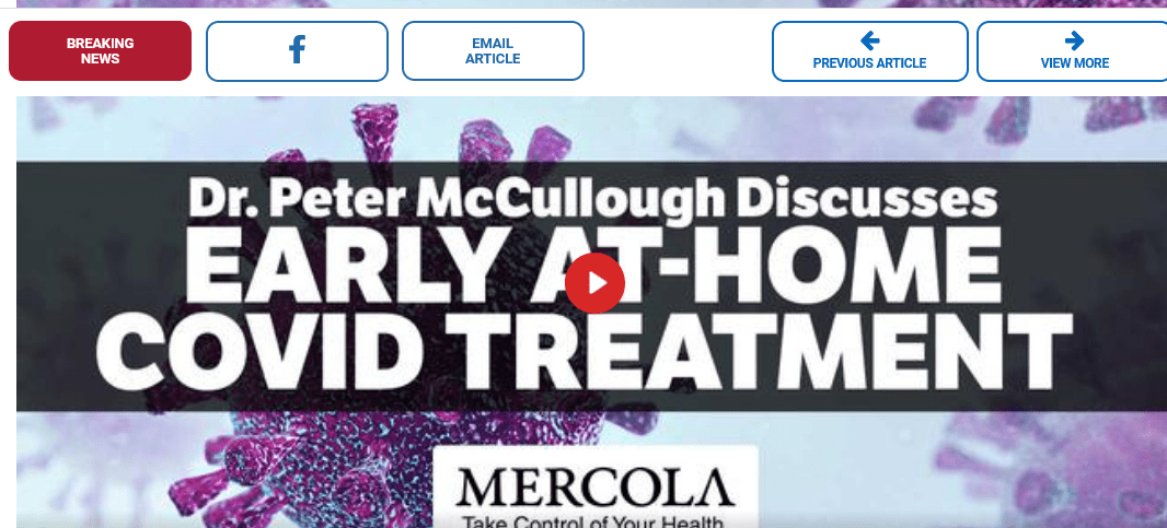 McCullough has been an outspoken advocate for early treatment for COVID. In August 2020, McCullough’s landmark paper “Pathophysiological Basis and Rationale for Early Outpatient Treatment of SARS-CoV-2 Infection”1 was published online in the American Journal of Medicine.