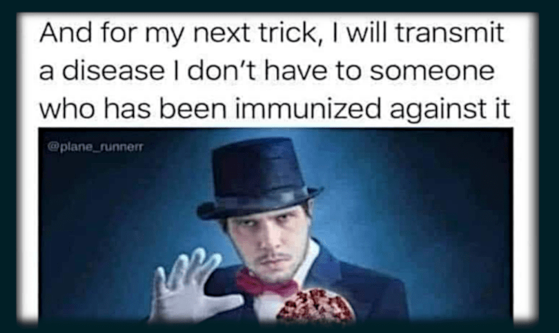 Well, the CDC already admitted that Vaccinated people can infect you, but this study shows it’s MUCH MORE LIKELY, even if you too are vaccinated. Why then are vaccinations being FORCED UPON US??? We can only conjecture that the Authorities are suffering from BRAIN FOG due to Long Covid!