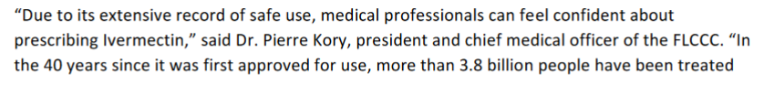 And notice that a government can purchase over one thousand home treatment Ivermectin containing kits for the price of one course of Remdesivir. Remdesivir runs $3,100, and it is an impractical drug as it must be given late in the disease during hospitalization. Moreover, it is a drug that does not save lives.