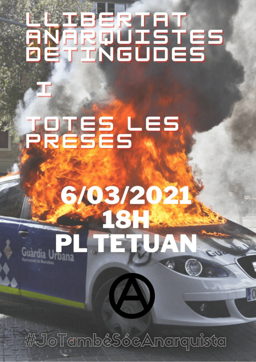 Solidarity Demo at prison for the Barcelona 6, still held despite collapse of Police Case Eng/Esp
