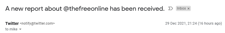 On the same day as the lockdown of our Twitter account we received the following from Twitter: