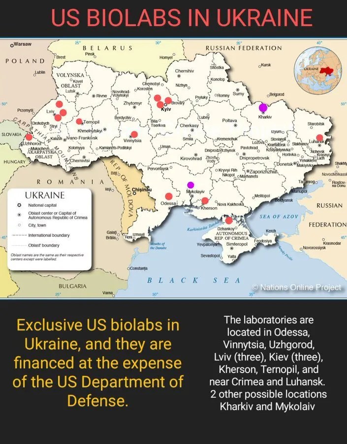 Information and speculation on the US BioWar Labs is now rife on social media. First a report by @WarClandestine showed the US military genocide labs in Ukraine. @WarClandestine was quickly banned from Twitter, but copies had been made and went viral, with more info on the labs in Kaakhstan and Georgia.