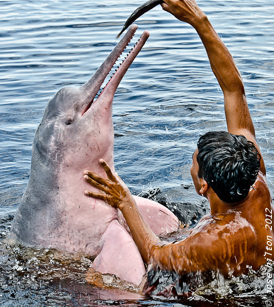 Botos are sweet, docile, and shy, but are curious about people and will play with local children. However, botos can bite like piranhas, so one should err on the side of caution and keep a respectful distance.