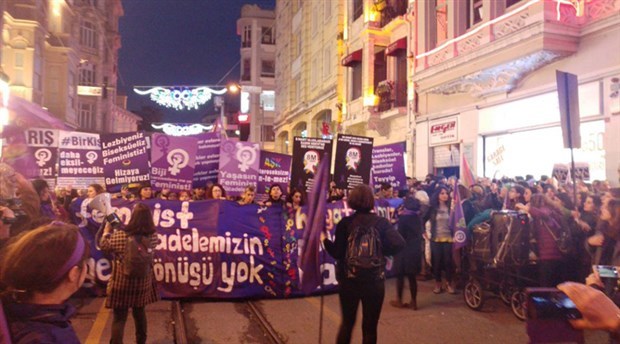 Thousands of protesters have been marching along İstiklal Street in Taksim on the night of March 8 since 2003 to denounce violence against women in Turkey, where at least 280 women were killed last year, and demand equal rights for women.