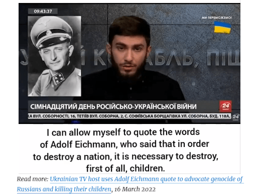 Read more: Ukrainian TV host uses Adolf Eichmann quote to advocate genocide of Russians and killing their children, 16 March 2022
