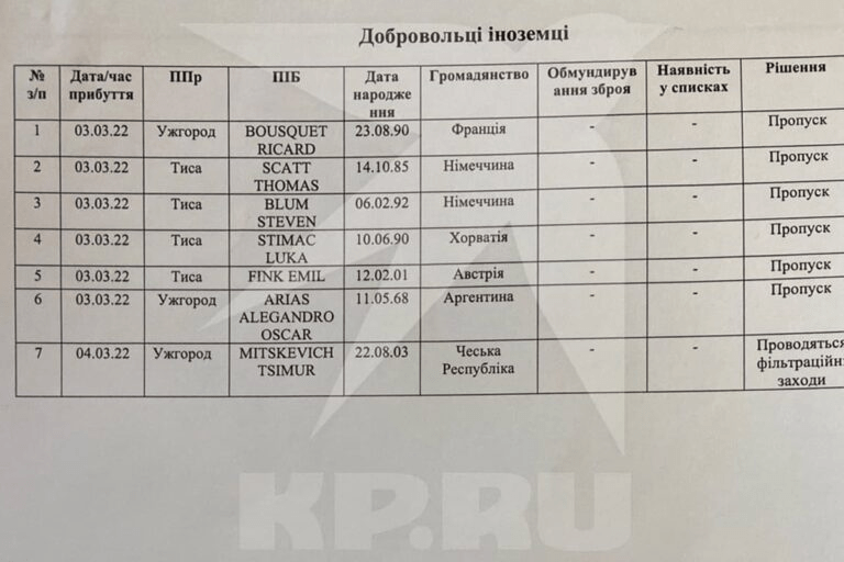 A report of the State Border Service of Ukraine about the arrival of foreign volunteers through the checkpoints of the Western Regional Administration. More than 170 foreigners arrived as volunteers.