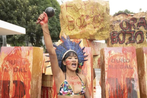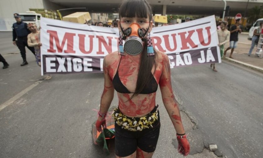Brazilian flags were also smeared with red ink as were large boxes symbolic of ingots of gold — one of the most sought-after minerals in the largest tropical rainforest on the planet — on which…