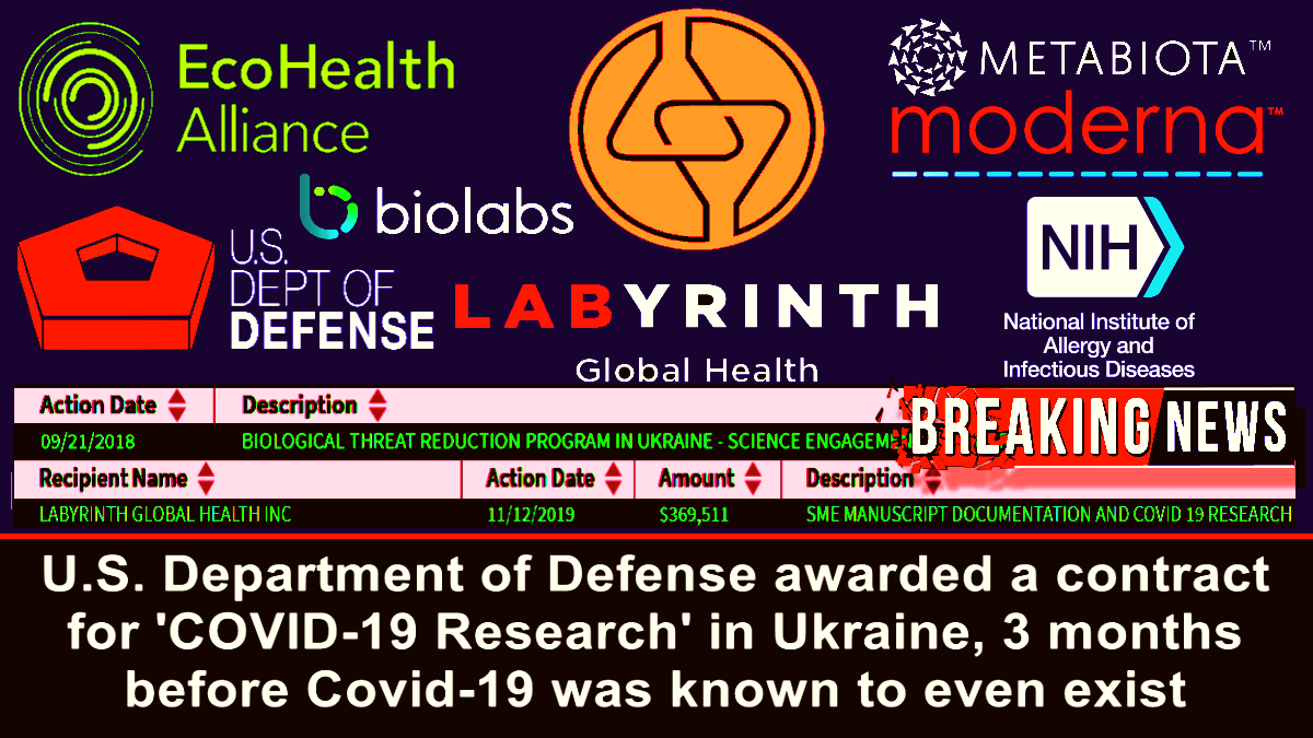 So with this being the official truth, why does United States Government data show that the U.S. Department of Defense (DOD) awarded a contract on the 12th November 2019 to Labyrinth Global Health INC. for ‘COVID-19 Research’, at least one month before the alleged emergence of the novel coronavirus, and three months before it was officially dubbed Covid-19?