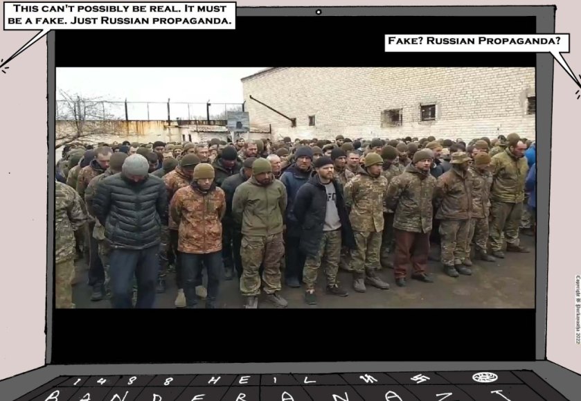 Anyone watching videos of Ukrainian regular forces prisoners, of whom there are by now many thousands, can’t but be struck by their increasingly pathetic state. Each batch is more worn out and scruffy than the last; half of them aren’t even in uniform. The Ukranazi coup regime seems to be throwing Volkssturm into the meat grinder while keeping the (still well-clad and armed) nazi units back to protect its own survival.