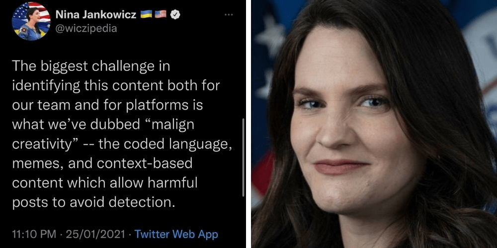 Heading up this new “Ministry of Truth” is Nina Jankowicz,4 a “Russian disinformation expert” who in her spare time makes a fool of herself singing made-up show tunes about disinformation and erotic Harry Potter songs5 on TikTok.