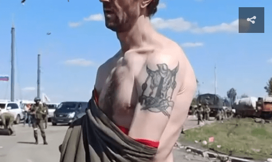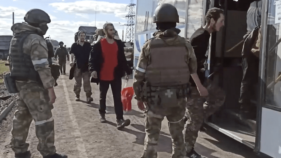 File Photo: Azov unit fighters, who have surrendered at the Azovstal steel plant, walk on a road in the Russia-controlled port city of Mariupol, Donetsk People’s Republic. © Sputnik/Russian Defence Ministry